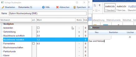 Eintragung der Notizen zu jedem einzelnen Unterpunkt des Studienablaufs möglich:
