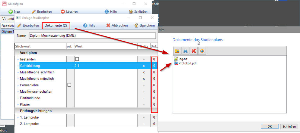 Beim Studenten wird dann der Studienverlauf verwaltet: